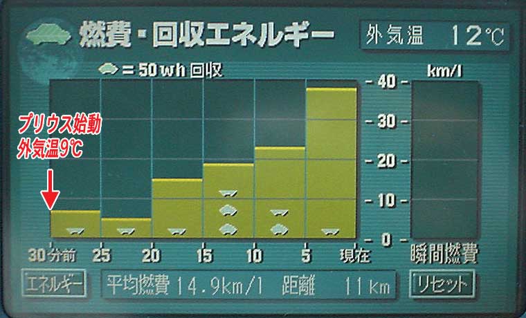 プリウスの弱点といっても、下の写真を見ておわかりのようにプリウス始動時から約10分間非常